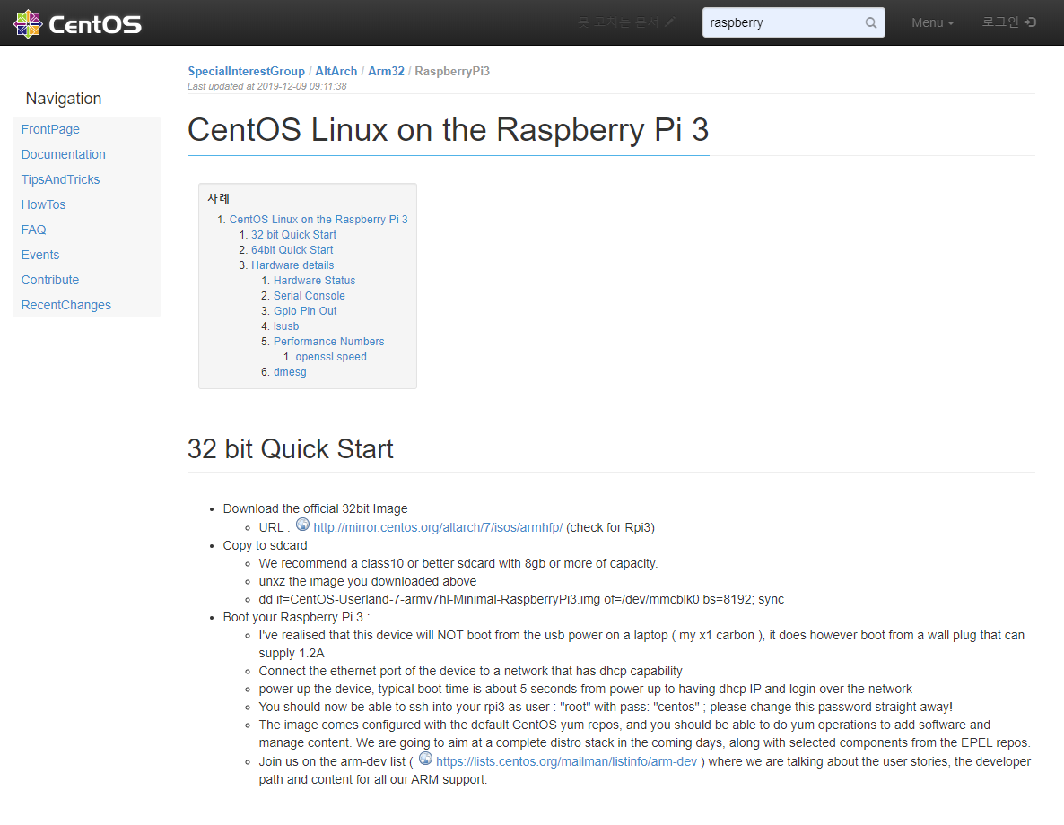[ 라즈베리 파이에 설치 가능한 CentOS 찾기 ]