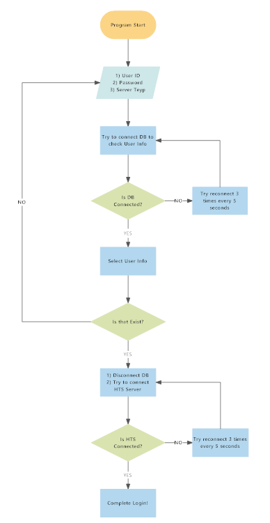 때문에 'HTS 로그인' 상태에서 'HTS 서버' Connection이 끊길 경우(네트워크 장애 등) 프로그램을 자동 종료하여도 크리티컬하진 않을 것이다.