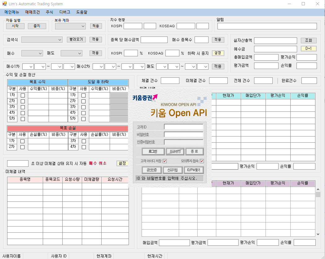 먼저 키움API의 경우에는 로그인 할때 키움 HTS에서 로그인하는 것과 같은 방식을 제공한다.