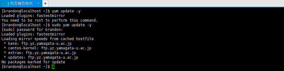 라즈베리파이에 설치한 CentOS 7의 기본 셋팅을 하려고 한다.